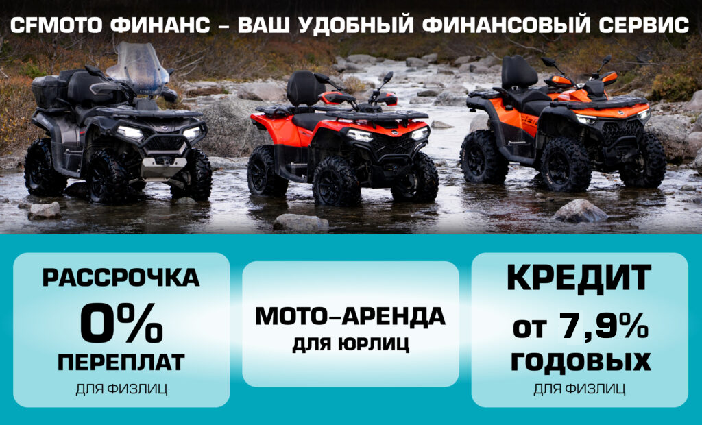 Также CFMOTO предлагает своим клиентам единственную в России программу долгосрочной аренды техники без выкупа — «CFMOTO-ПОДПИСКА»!Данная программа предоставляет клиентам CFMOTO уникальную возможность получить в пользование мототехнику CFMOTO максимально оперативно, удобно и, что самое главное, без серьезных финансовых вливаний на первоначальном этапе!